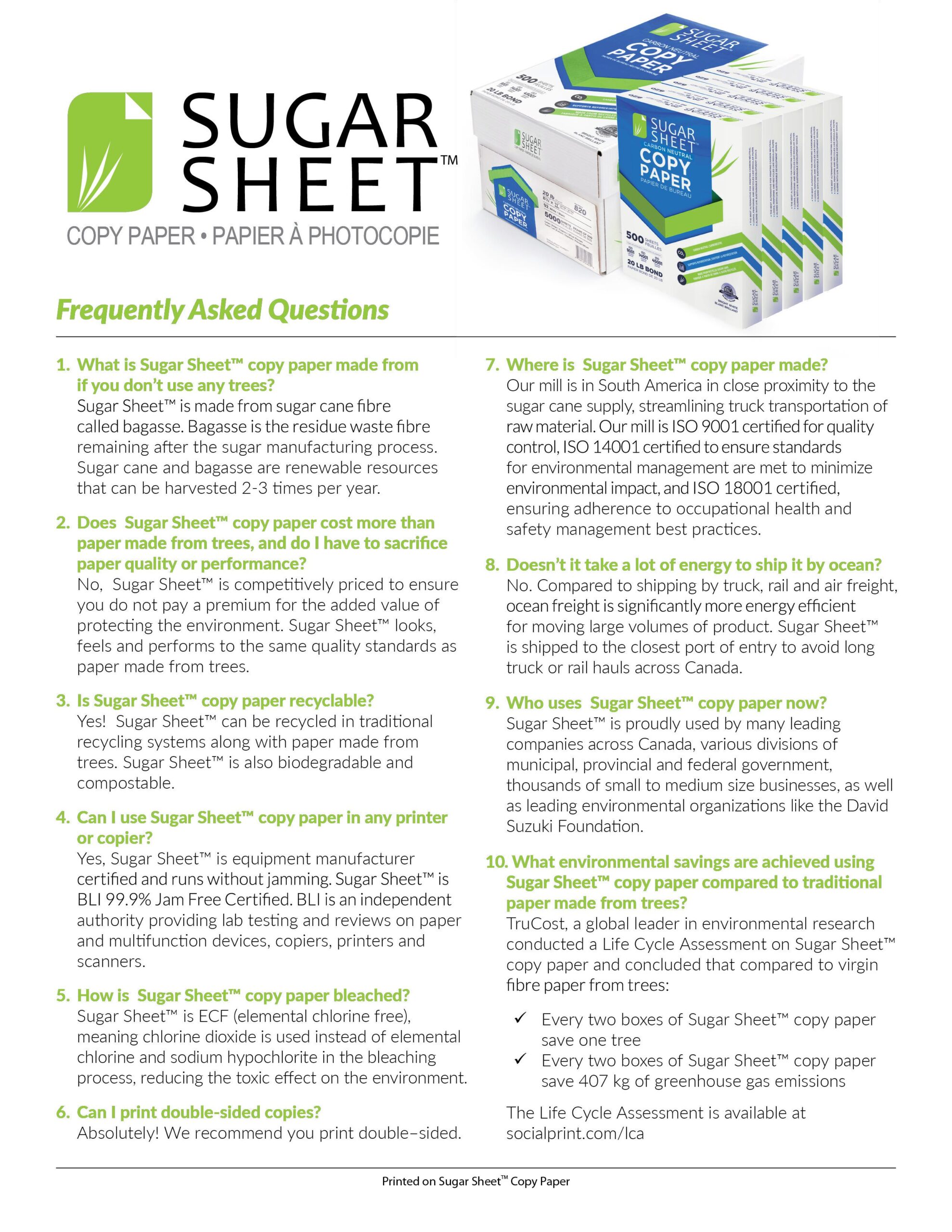 What’s the point in making an eco-friendly paper that isn’t affordable? From the start, Sugar Sheet copy paper was designed to change how businesses, governments and individuals think about copy paper. We knew we had to provide Sugar Sheet copy paper at a competitive price AND make it easy for customers to make the switch.